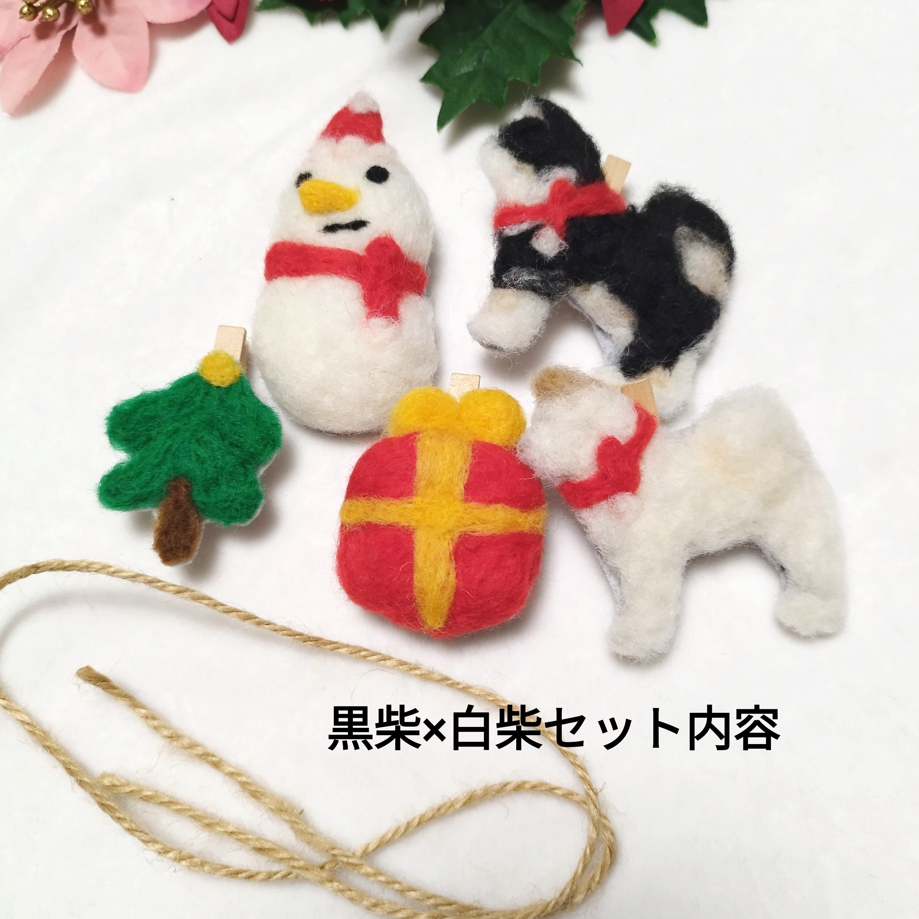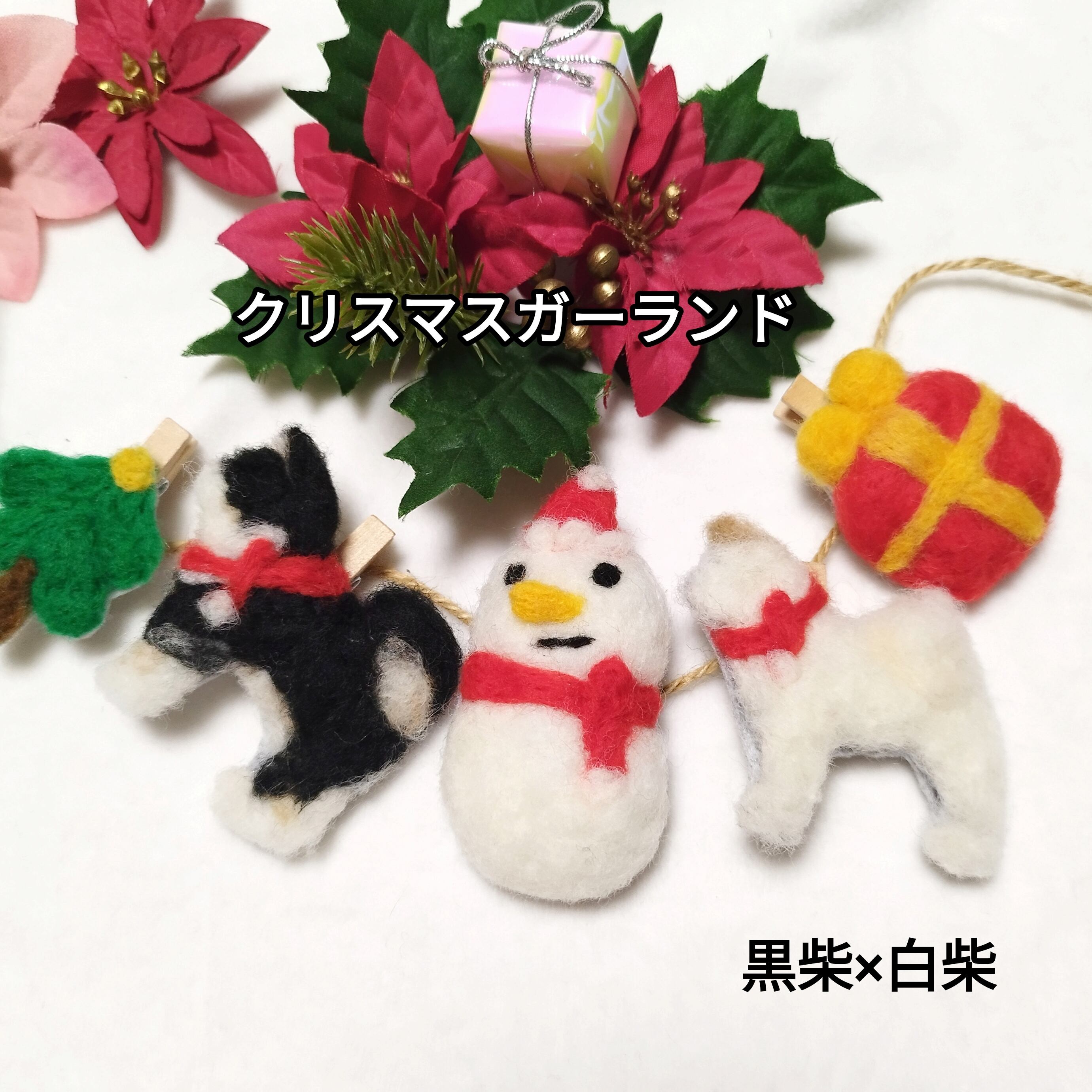 【クリスマスガーランド】黒柴×白柴