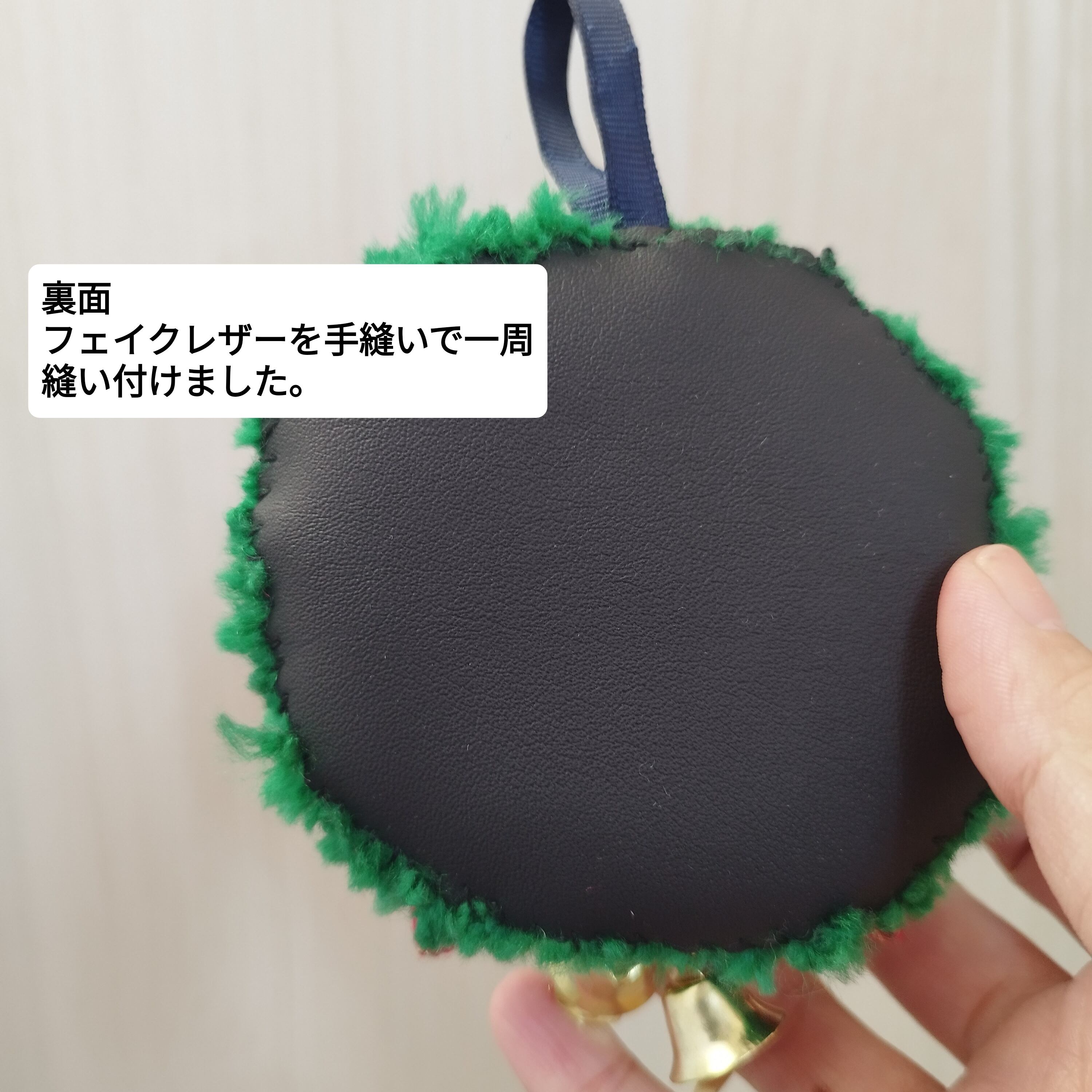 裏面…フェイクレザーを手縫いで一周縫い付けました。