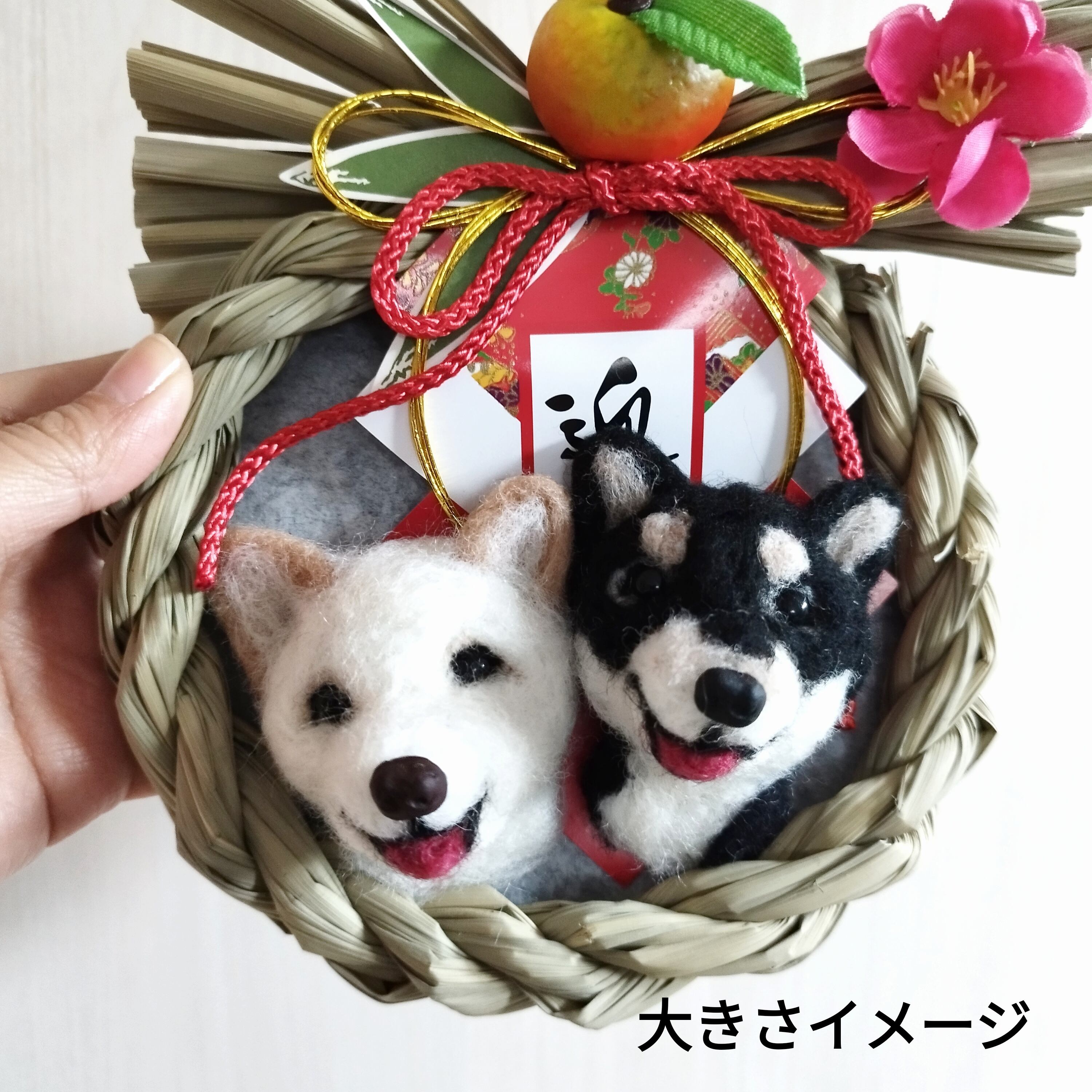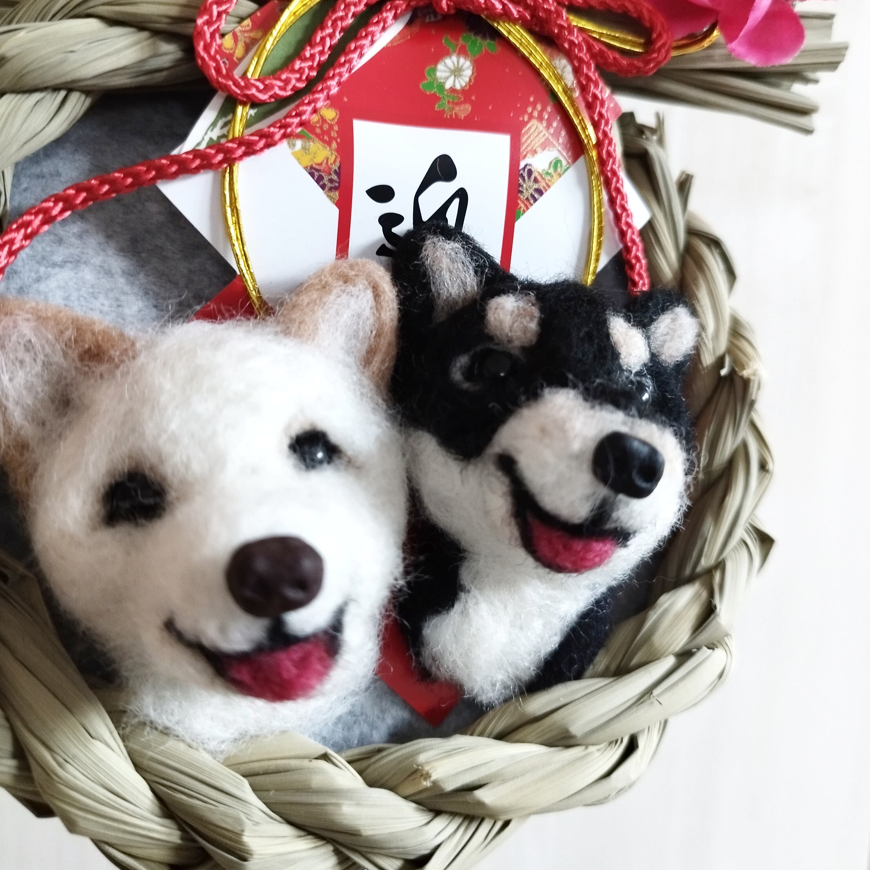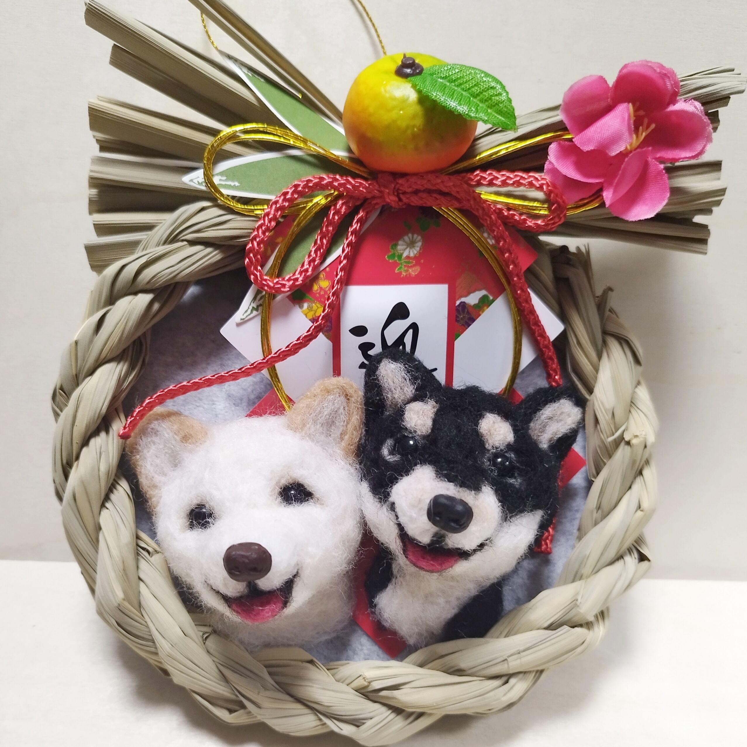 毎年飾れるお正月飾り【黒柴と白柴】
